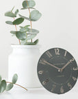 The Mulberry is our glamorous sister to the Arabic. New for 2024, the simple, open-faced, curvaceous styling welcomes an subtle olive green to the collection. Foiled metallic numerals, ticks, and hands richly decorate the distinct 6" clock face. The numerals and markers are embossed to add depth and character. A captivating, glamorous timepiece to suit a contemporary home.