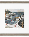 Sabrina Roscino's muted watercolours, meticulously assembled, create a charismatic print. Layered detail across features establishes a sense of depth across the modern coastal scene. The print is presented onto torn Newell paper set behind a glaze, enhancing its allure. The artwork is finished with a worn wood-effect frame with white highlights to emphasise the profile.