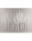 Discover the serene elegance of Art Marketing Wonder Woods, a masterfully crafted wall feature designed by the talented Laura Bolton for Art Marketing. This contemporary piece presents a textured oatmeal backdrop, inspired by the timeless appeal of woven linen, serving as a substantial foundation for the graceful trees poised atop. As spring approaches, these trees, with their bare crowns, symbolise the enchanting cycle of nature's rejuvenation and rebirth.