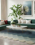 The Asiatic Hive Teal Rug is a beautiful and stylish addition to any home, featuring a scalloped design with a captivating gradient of teal, aqua, and soft grey tones. Hand-tufted from 100% wool, this luxurious rug offers exceptional durability and a soft, comfortable texture, making it perfect for modern, coastal, or nature-inspired interiors. Its unique shape and bold pattern create a dynamic focal point, ideal for living rooms, bedrooms, or statement spaces that require a contemporary edge. The Hive Teal Rug effortlessly enhances your décor, adding depth, elegance, and a serene atmosphere to any room.