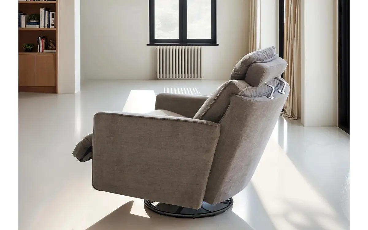 Bonne is the perfect armchair to combine with the Boston model, as they share their natural lines and curves and their calm design. However, Bonne is not a conventional recliner; we have succeeded in raising comfort to infinity, thanks to its new headrest adjustable both in height and inclination which adapts to everyone regardless of height or complexion, and to its high resting position which favours a good resting heart position.