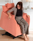 The new Nadia Powerlift armchair by Fama Sofás is the perfect solution for those who need a bit of extra help in their daily life, without giving up on design and aesthetics. This lift recliner has been created to offer a modern, elegant, and functional solution for people with reduced mobility, directly inspired by the requests of our own customers.