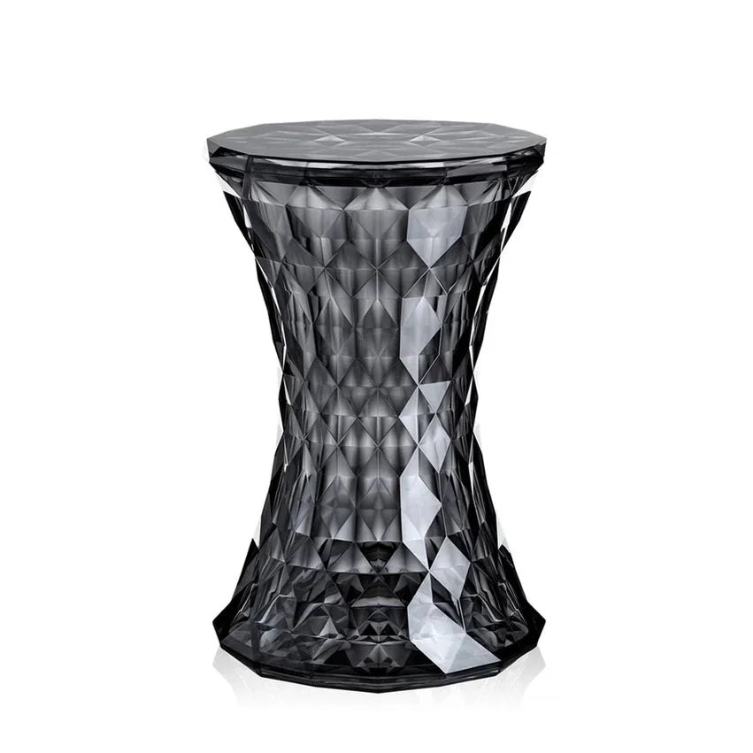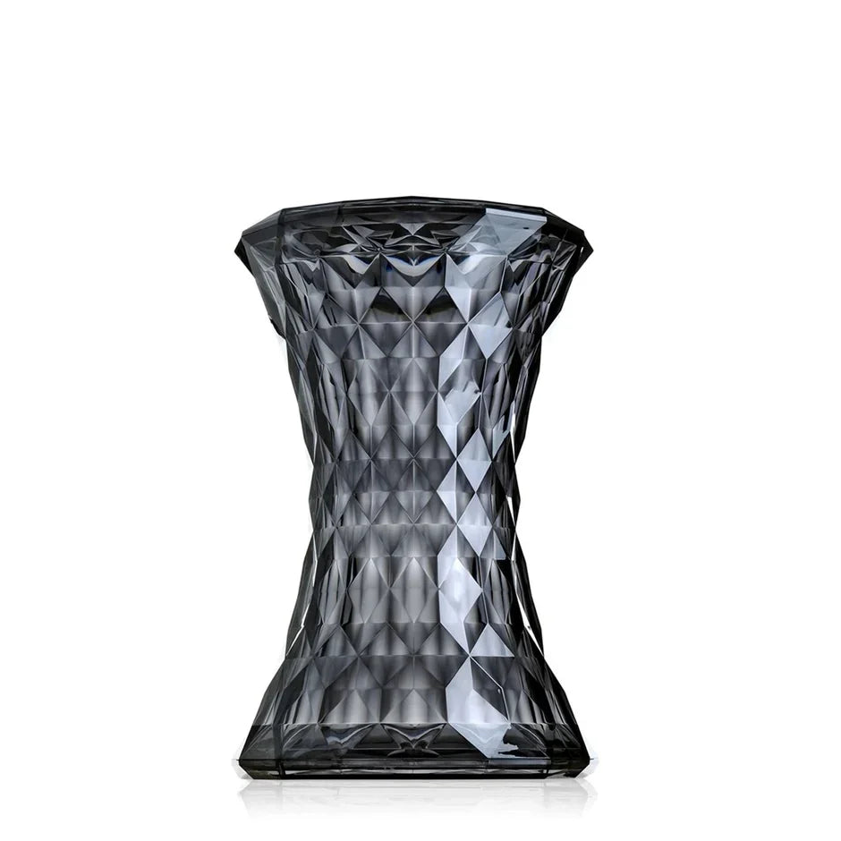The Kartell Stone Stool in Fume is a striking piece of furniture designed with an hourglass shape and an extraordinary surface that dazzles like a diamond. Its irregular structure, made up of countless geometric facets, reflects light in a captivating display of colours and brilliance. Both functional and artistic, this stool adds a touch of elegance and modern sophistication to any space, making it a standout addition to contemporary interiors.