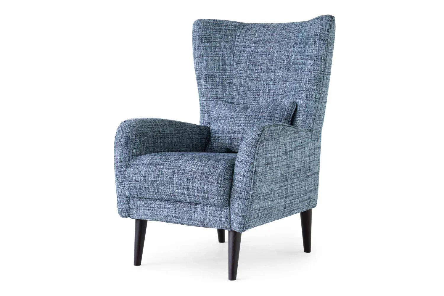 The Kenzie Armchair features tall, elegantly crafted wooden feet that not only add a touch of timeless charm but also provide a sturdy foundation. These feet suspend a meticulously designed framework, showcasing clean lines and a refined aesthetic that instantly elevates your living space.