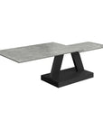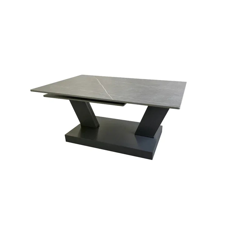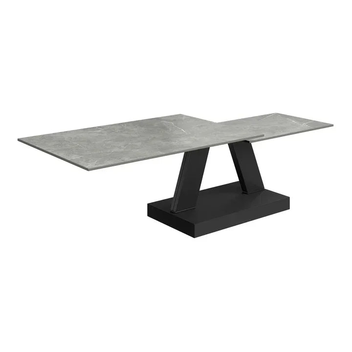 Featuring a swivel extending mechanism, this coffee table is designed to expand effortlessly, offering versatility in size to suit your needs. Constructed with matte grey sintered stone ceramic and supported by a painted steel base, it boasts a contemporary and refined aesthetic. The harmonious design between the coffee table and side table ensures a seamless and unified look in your living space.
